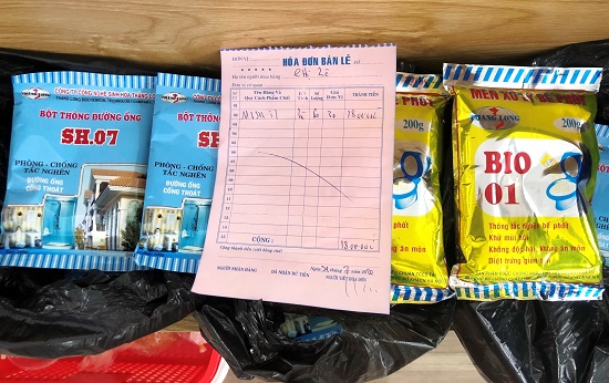 Bột thông cống và biên lai các đối tượng bán cho người dân.