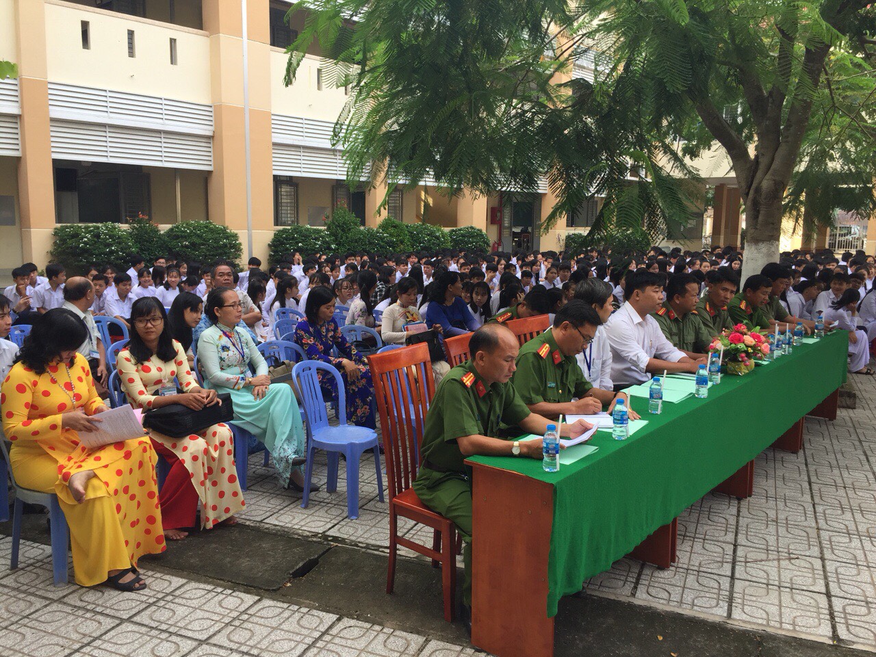 Lực lượng Công an tuyên truyền phòng, chống tội phạm cho cán bộ, giáo viên, học sinh.