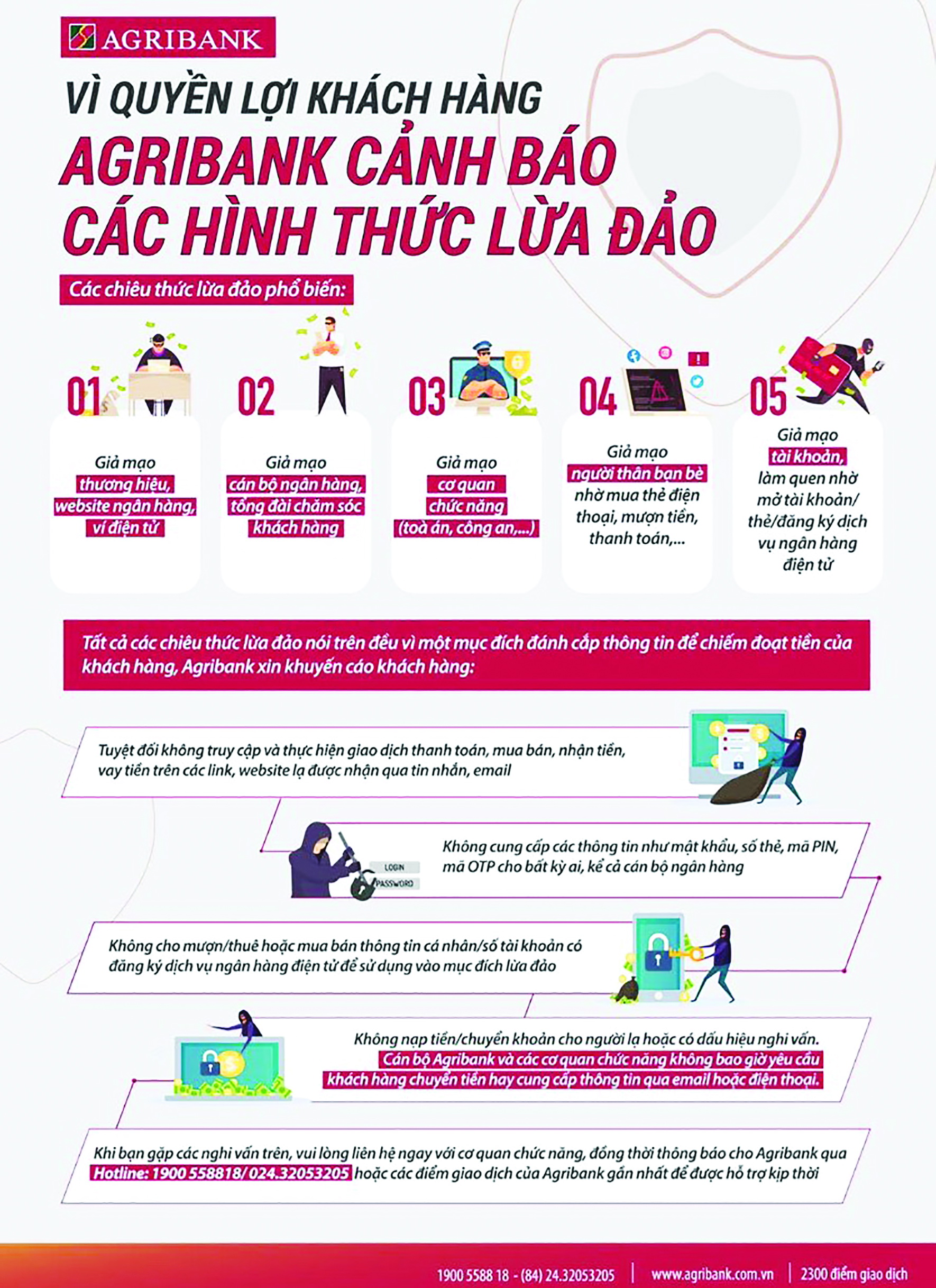 Agribank cảnh báo đến người dân về các hình thức lừa đảo.