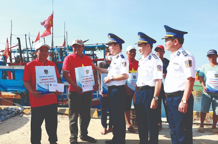 Bộ tư lệnh Cảnh sát biển tổ chức tặng quà ngư dân đảo Lý Sơn (Quảng Ngãi) trong Chương trình "Cảnh sát biển đồng hành với ngư dân". Ảnh: NAM TRANG.