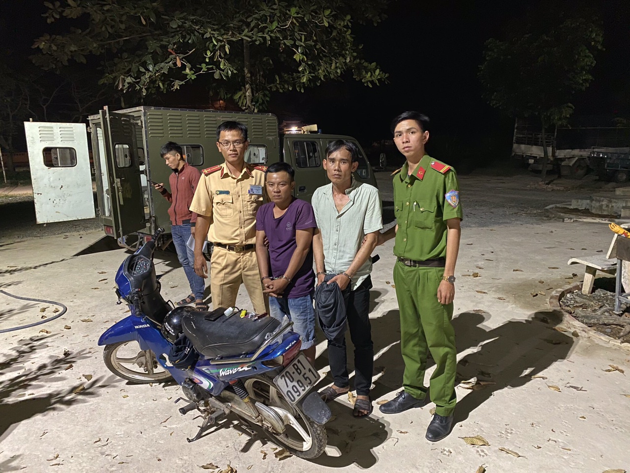 Vào lúc 21 giờ 45 phút ngày 29.12, trong lúc đang thực hiện nhiệm vụ trên tuyến QL22B đoạn từ cầu Cần Đăng đến Cửa khẩu Chàng Riệc, tổ tuần tra kiểm soát thuộc Đội CSGT Đường bộ, Phòng Cảnh sát giao thông Công an tỉnh Tây Ninh phát hiện xe mô tô biển số 70B1- 099.51 lưu thông từ hướng cầu Cần Đăng về ngã 3 Cây Gòn có biểu hiện nghi vấn nên tiến hành kiểm tra người và phương tiện.
