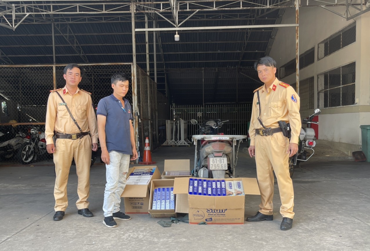 Cụ thể, vào lúc 13 giờ 30 phút, trên đường Huỳnh Thị Hương thuộc khu phố Lộc An, phường Trảng Bàng, thị xã Trảng Bàng, Tổ Cảnh sát giao thông thuộc Phòng Cảnh sát giao thông Công an Tây Ninh gồm Thiếu tá Nguyễn Văn Thừa, Thiếu tá Nguyễn Văn Quốc, Thiếu tá Huỳnh Tuấn Kiệt, Đại úy Mai Thống Lĩnh dừng kiểm tra xe mô tô biển số 61B1-795.68. Qua kiểm tra phát hiện trên xe đang chở 4 thùng giấy bên trong có 1.490 gói thuốc lá điếu nhãn hiệu Hero, Jet không có hoá đơn chứng từ chứng minh nguồn gốc.