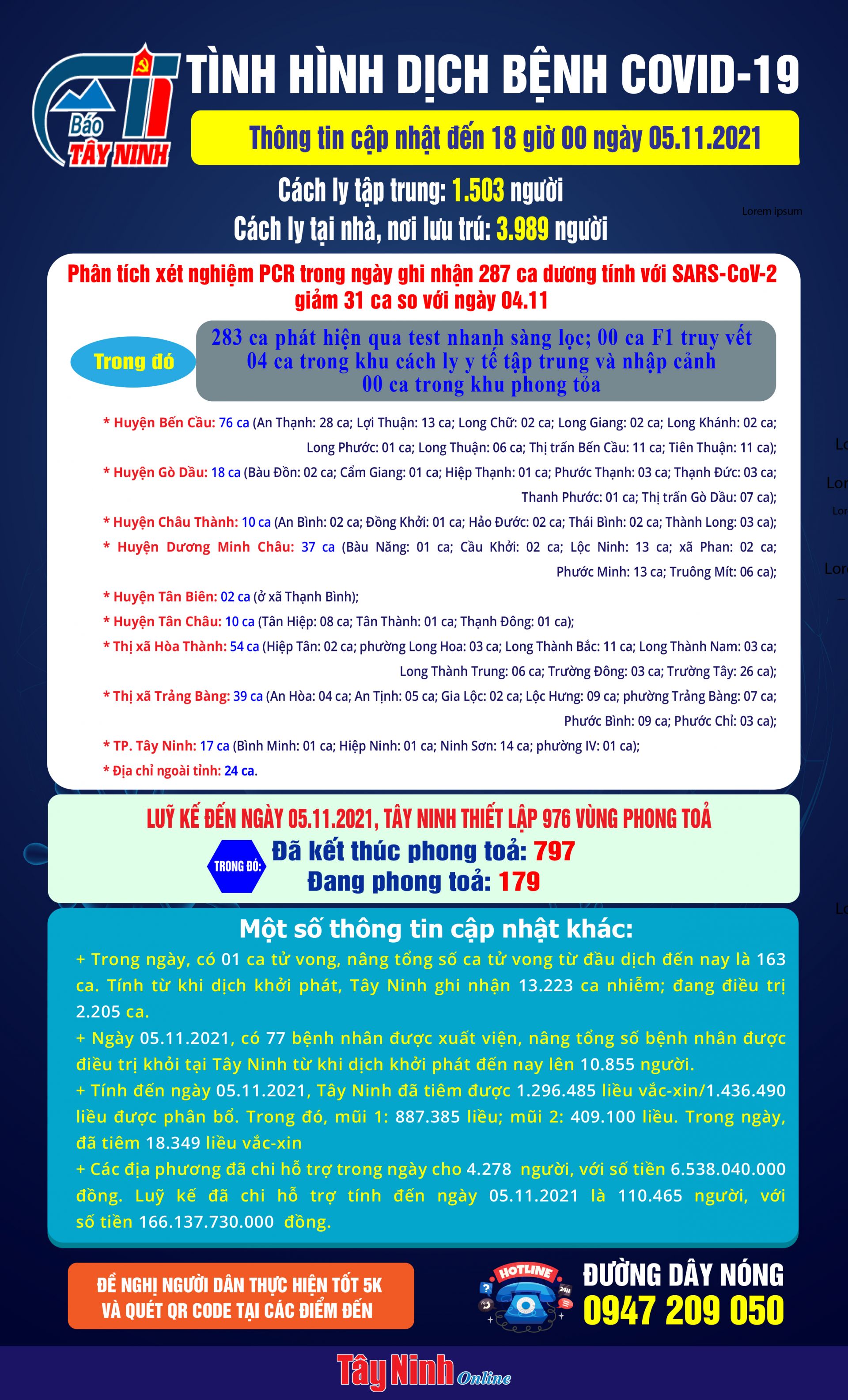Ngày 05.11.2021, có 77 bệnh nhân được xuất viện, nâng tổng số bệnh nhân được điều trị khỏi tại Tây Ninh từ khi dịch khởi phát đến nay lên 10.855 người.
