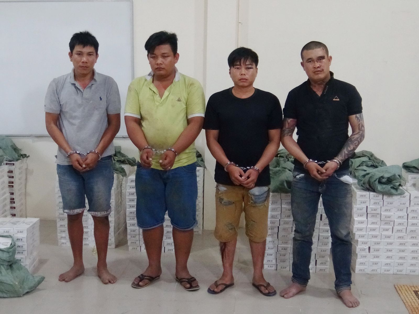 4 đối tượng buôn lậu thuốc lá bị bắt giữ cùng tang vật.