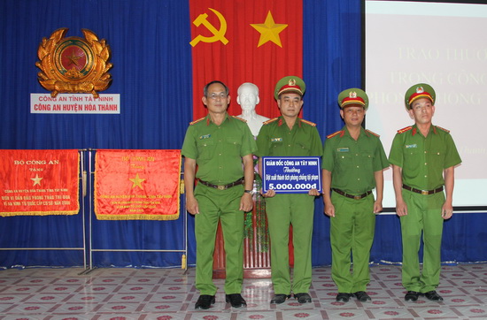 Vừa qua, Đại tá Lý Hồng Sinh- Phó giám đốc Công an tỉnh Tây Ninh đã đến trao thưởng đột xuất 5 triệu đồng cho Đội Cảnh sát điều tra tội phạm về ma túy Công an huyện Hòa Thành, vì đã có thành tích xuất sắc triệt phá chuyên án, mua bán, tàng trữ, sử dụng trái phép chất ma túy.