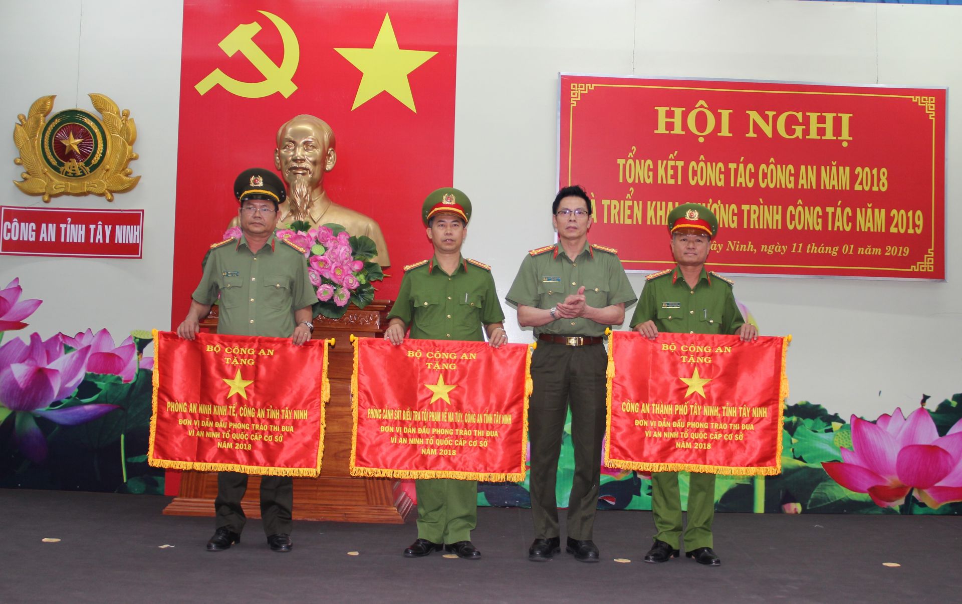 Với những thành tích đạt được năm 2018, Công an Tây Ninh đề nghị Chính phủ tặng cờ thi đua cho 1 đơn vị; Bộ Công an tặng cờ thi đua cho 3 đơn vị; Ban Giám đốc công nhận danh hiệu đơn vị quyết thắng 10 đơn vị và 15 đơn vị tiên tiến.