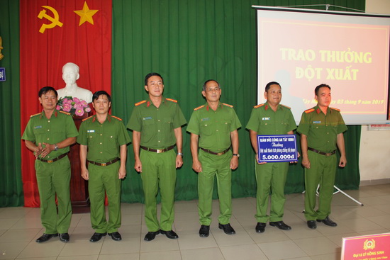 Chiều 3.9, Ban Giám đốc Công an Tây Ninh tổ chức trao thưởng đột xuất 5 triệu đồng cho Phòng Cảnh sát hình sự vì đã có thành tích triệt xóa tụ điểm đánh bạc quy mô lớn tại huyện Châu Thành.