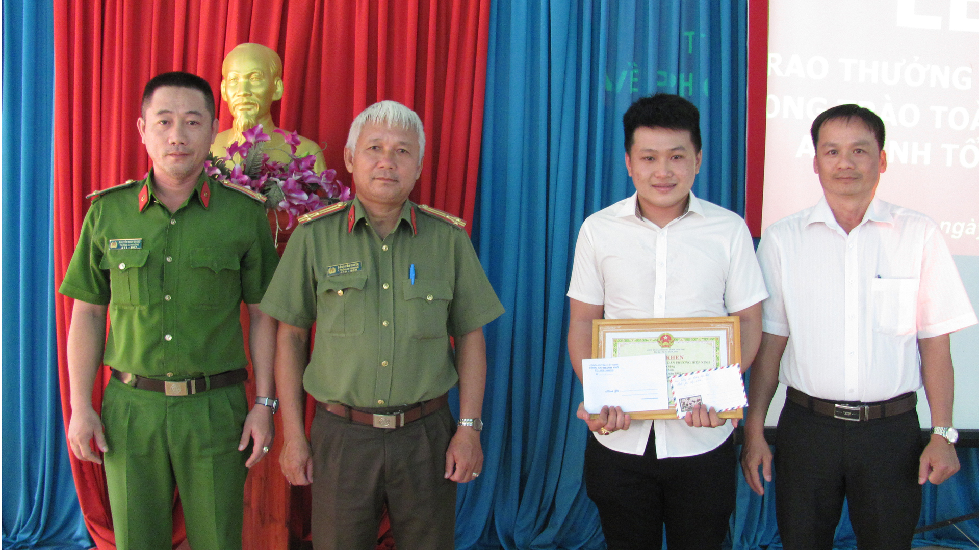 Nhằm động viên, khích lệ tinh thần trách nhiệm của anh Lê Hoàng Phương, Công an TP.Tây Ninh và UBND phường Hiệp Ninh quyết định khen thưởng đột xuất cho anh Lê Hoàng Phương.
