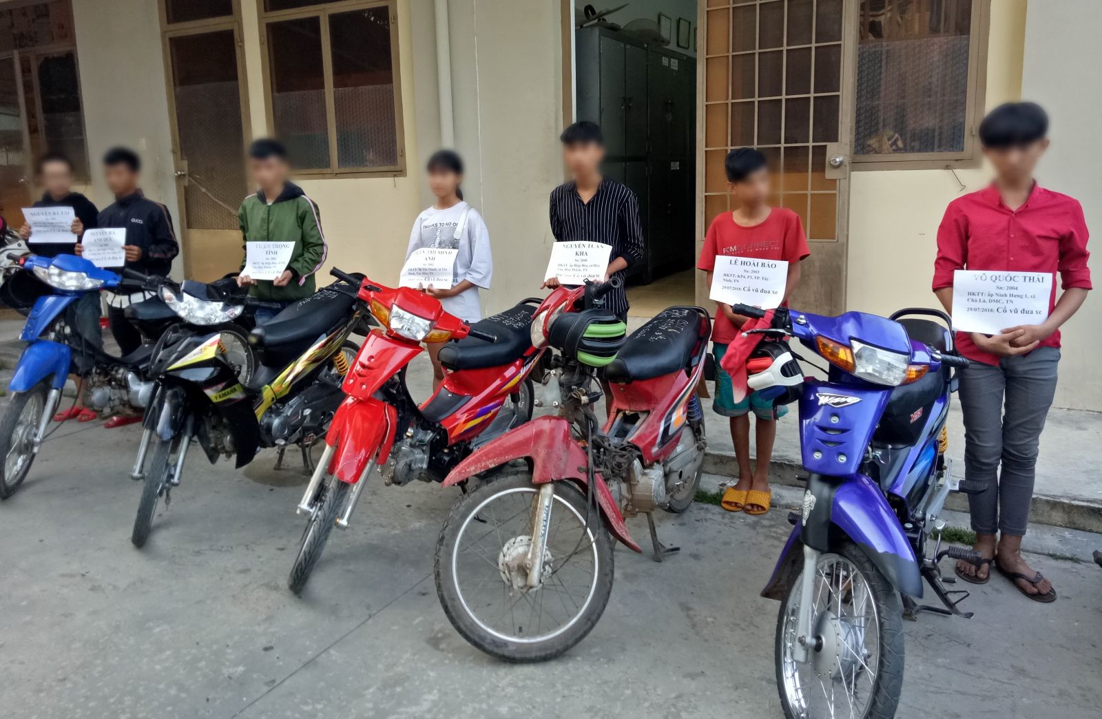 Rạng sáng 29.7, qua công tác tuần tra và được quần chúng cung cấp thông tin, Đội Cảnh sát trật tự- cơ động CATP.Tây Ninh đã phát hiện, vây bắt nhóm thanh thiếu niên tham gia đua xe và cổ vũ đua xe trái phép trên địa bàn phường 4.