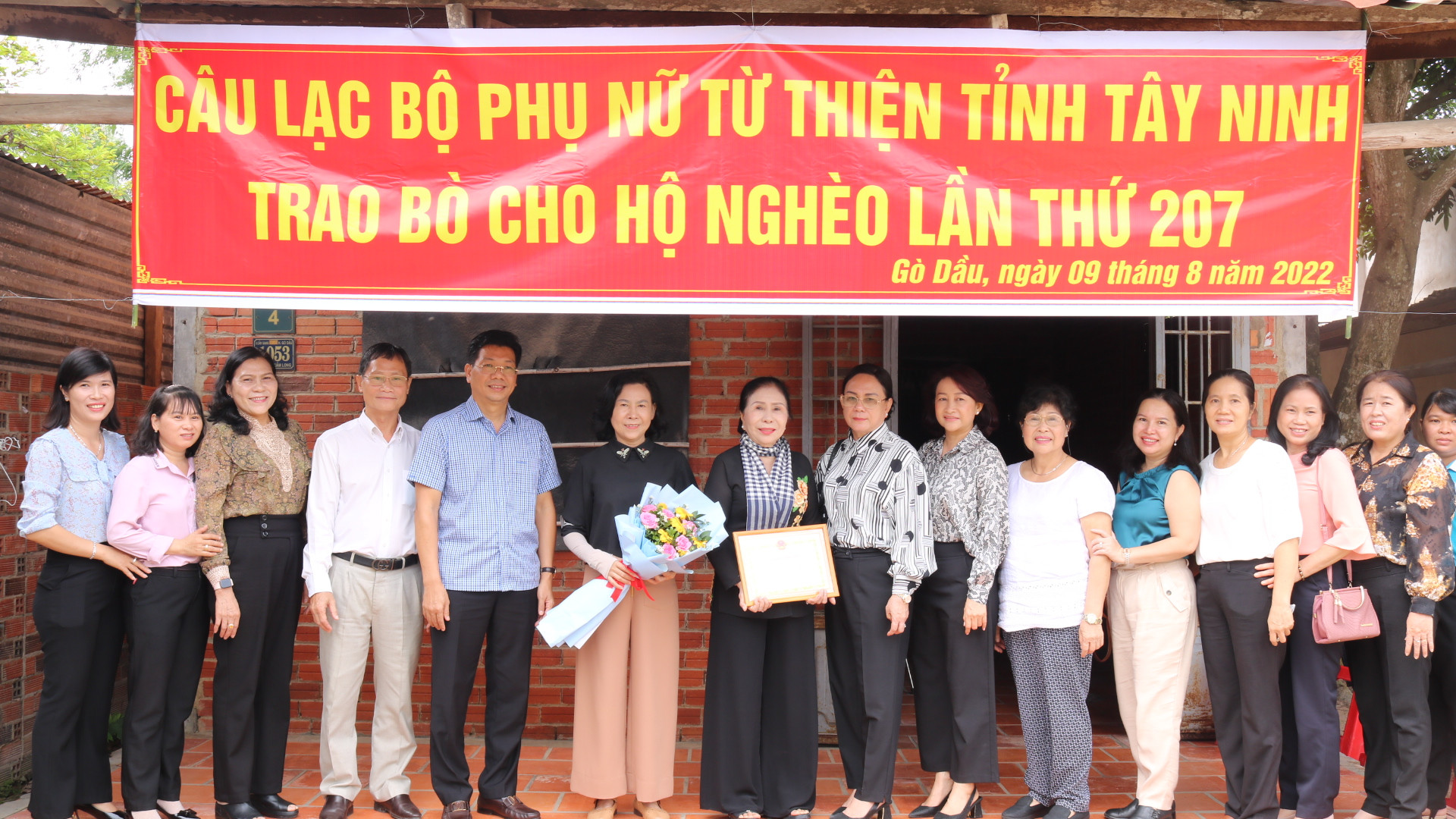 Sáng 9.8, Câu lạc bộ nữ từ thiện Tây Ninh phối hợp Hội Liên hiệp Phụ nữ tỉnh và huyện Gò Dầu tổ chức trao tặng bò sinh sản lần thứ 207 cho phụ nữ nghèo.