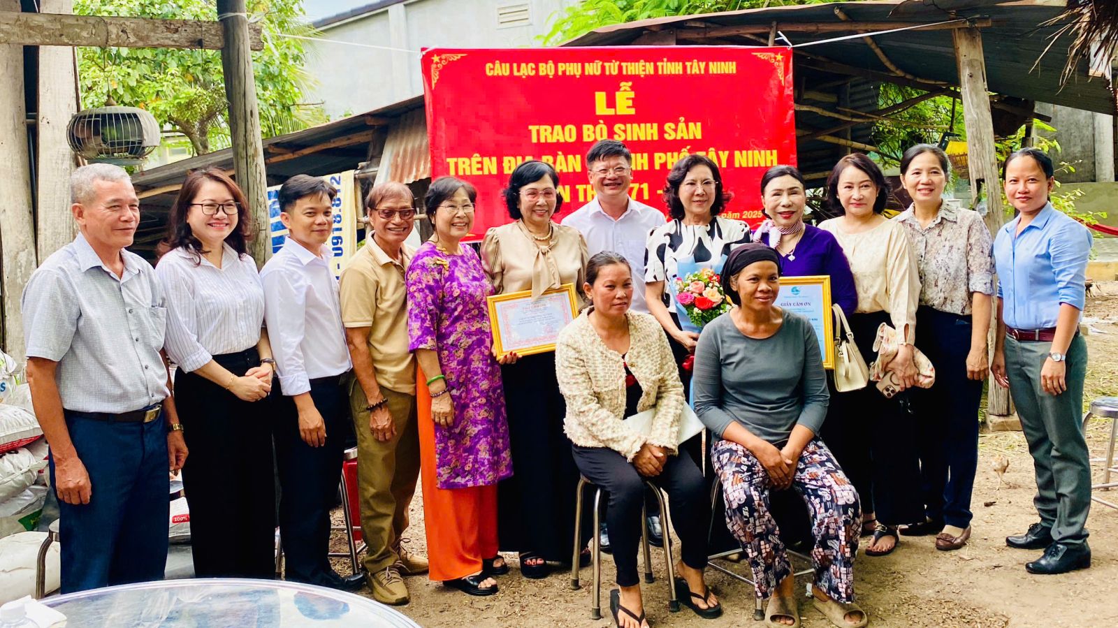 Tại buổi lễ, Câu lạc bộ Phụ nữ từ thiện tỉnh Tây Ninh trao tặng 2 cặp bò giống, mỗi cặp gồm 1 con bò mẹ và 1 con bê, trị giá 40 triệu đồng cho gia đình chị Thị Sa Ki Dá (sinh năm 1978), đồng bào dân tộc Chăm Islam ngụ khu phố 2, phường 1 và gia đình chị Cao Thị Kim Đào (sinh năm 1977), ngụ ấp Kinh tế, xã Bình Minh, thành phố Tây Ninh. Cả 2 chị đều là hộ có hoàn cảnh đặc biệt khó khăn ở địa phương.