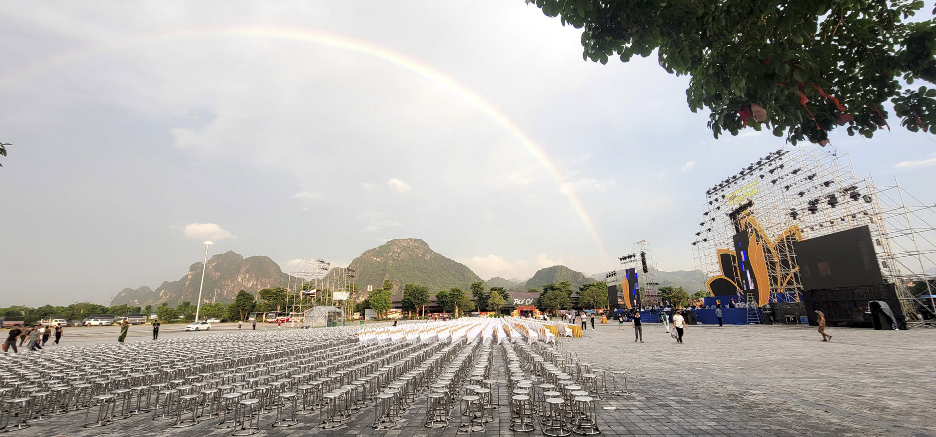 Cầu vồng xuất hiện tại chùa Tam Chúc vào chiều ngày 20/5