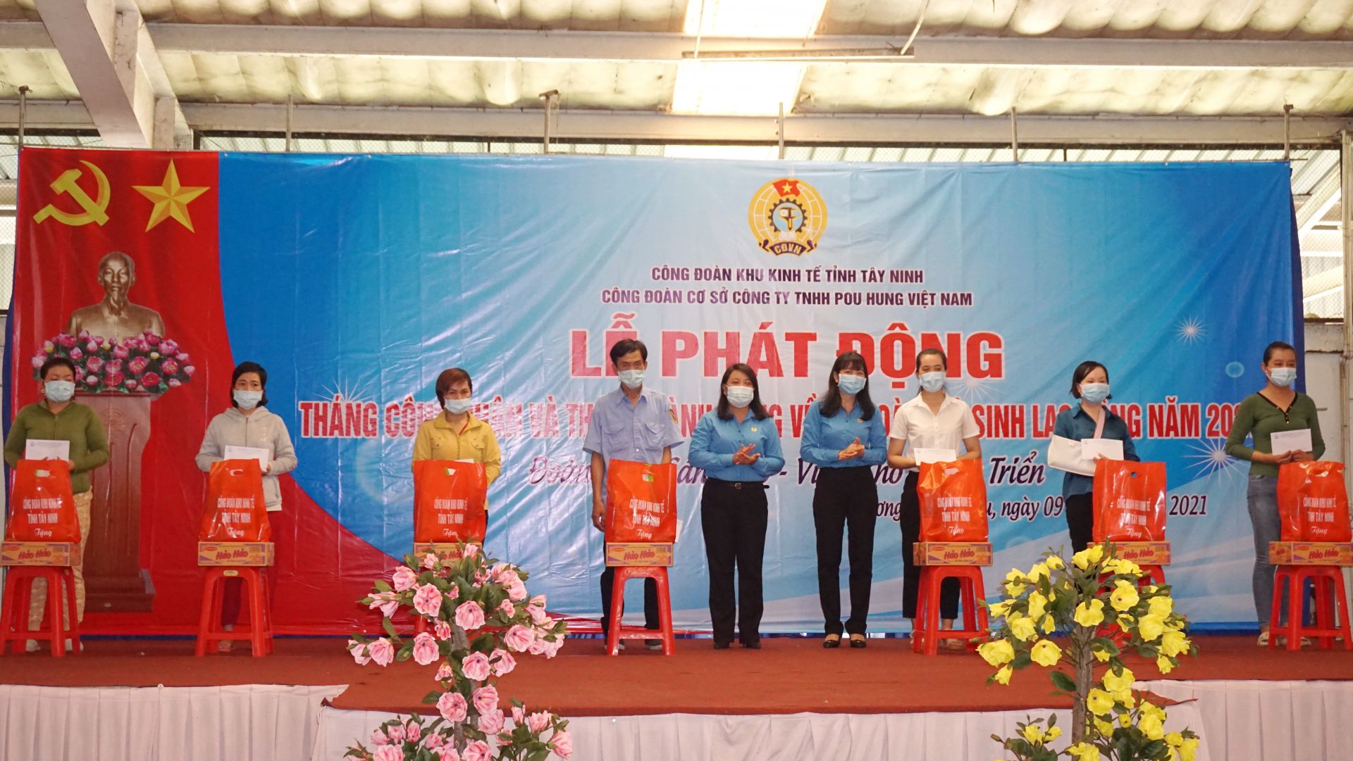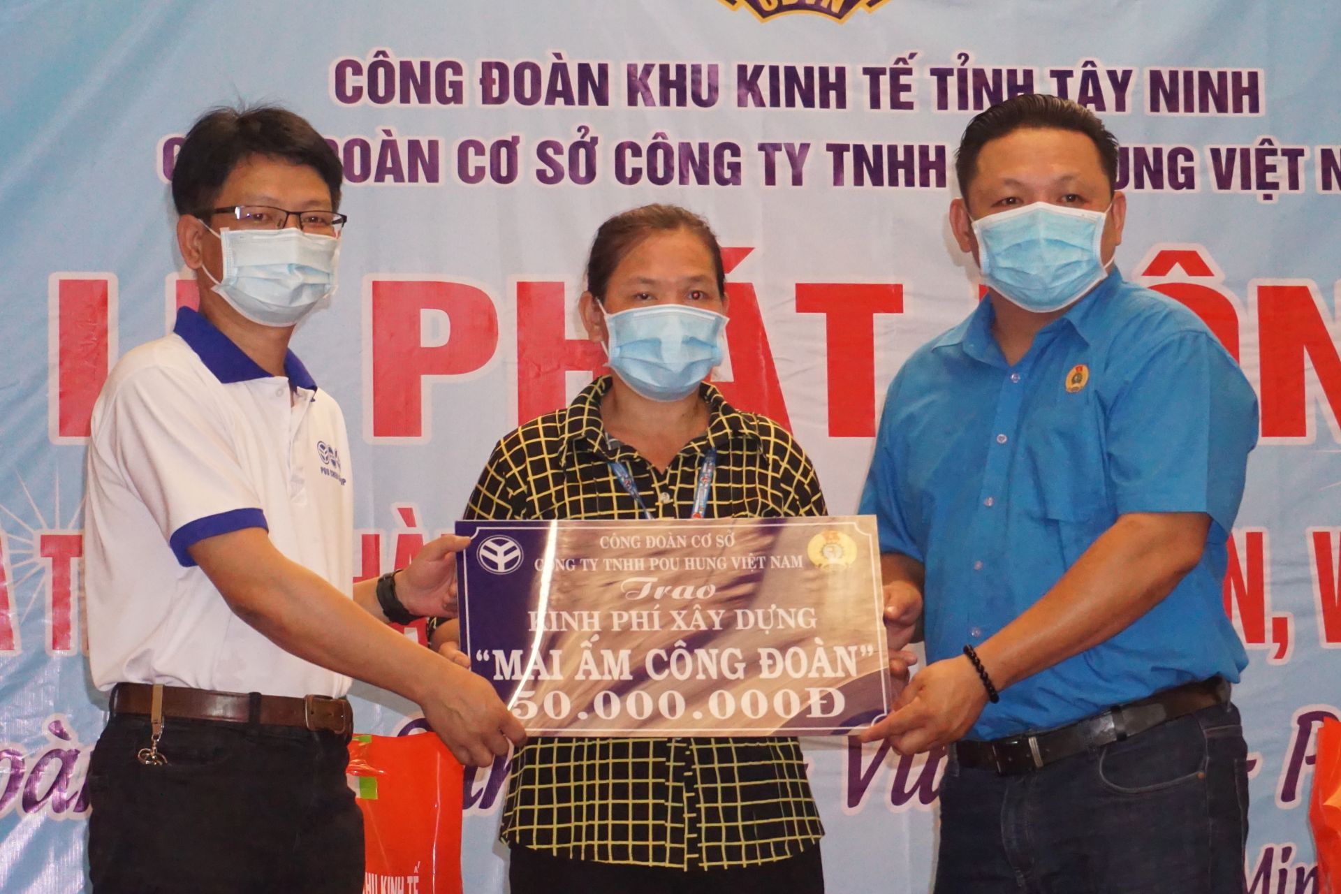 Dịp này, Công đoàn cơ sở Công ty TNHH Pou Hung Việt Nam trao tặng kinh phí 50 triệu đồng xây nhà Mái ấm Công đoàn cho một đoàn viên có hoàn cảnh khó khăn về nhà ở; tặng 100 phần quà, mỗi phần trị giá 500.000 đồng cho đoàn viên, người lao động có hoàn cảnh khó khăn. Công đoàn Khu Kinh tế tỉnh Tây Ninh cũng trao tặng 7 phần quà, mỗi phần trị giá 1.000.000 đồng cho công nhân có hoàn cảnh khó khăn, bị tai nạn lao động của công ty.