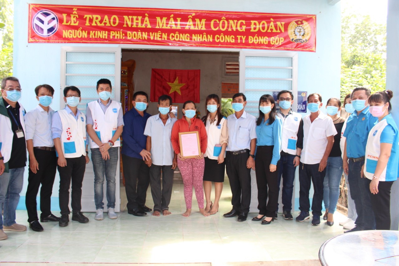 Căn nhà có diện tích xây dựng 80m2, trị giá 50 triệu đồng được trao cho đoàn viên Lê Ngọc Thanh (sinh năm 1978, ngụ ấp Cẩm An, xã Cẩm Giang). Chi phí được trích từ nguồn vận động đoàn viên, công nhân công ty đóng góp hỗ trợ.