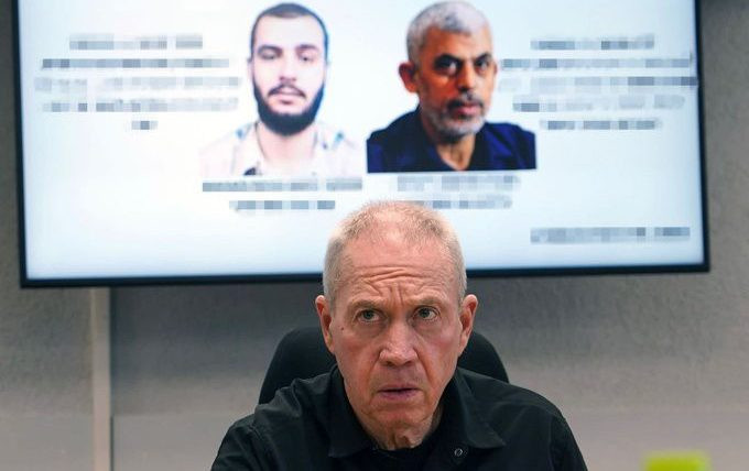 Thông tin của Mohammed Sinwar xuất hiện trong buổi họp báo của Bộ trưởng Quốc phòng Israel. Ảnh: Telegraph