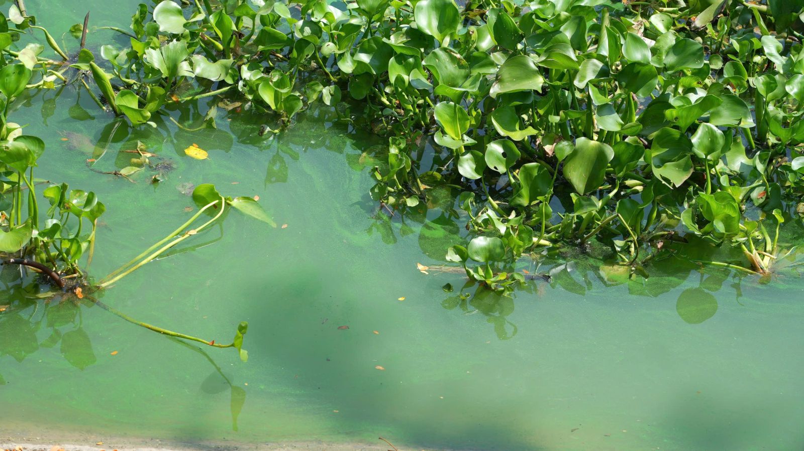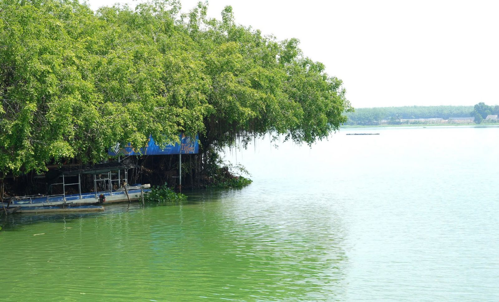 Nước hồ Tha La chuyển màu xanh, mặt nước xuất hiện tảo xanh dày đặc. Ảnh chụp ngày 8.3.2025