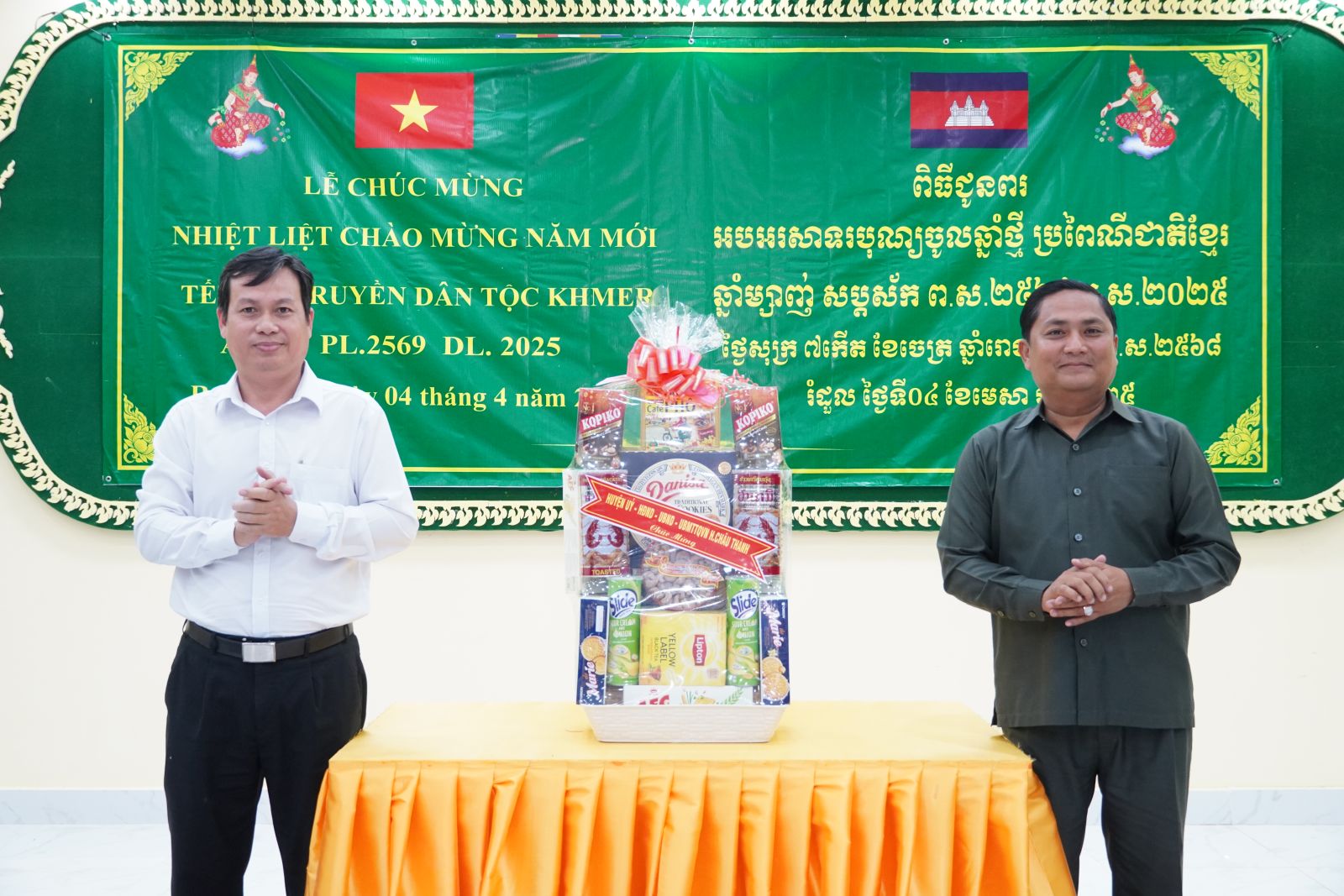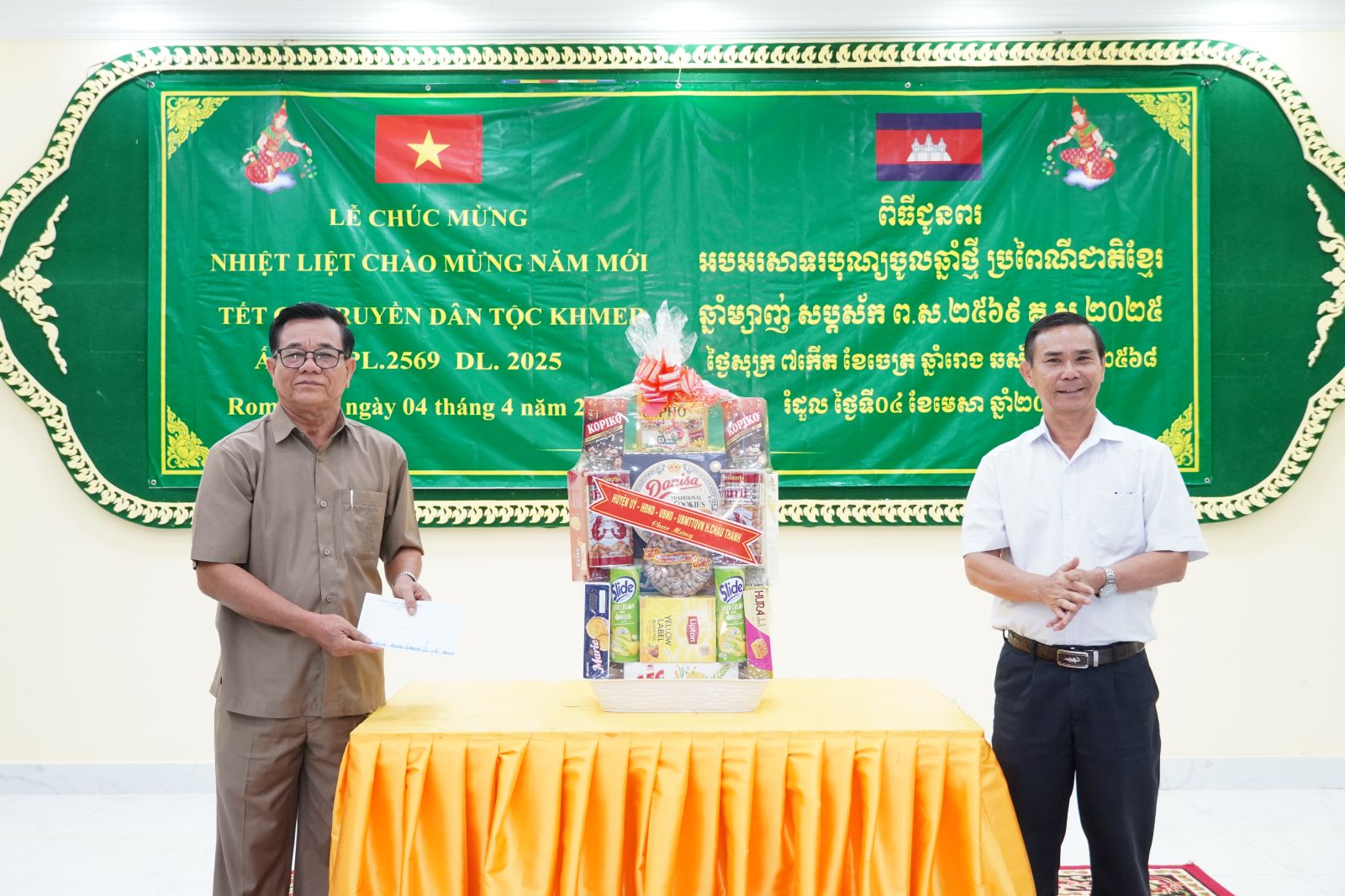 Dịp này, lãnh đạo huyện Châu Thành và các đơn vị đã gửi tặng những phần quà ý nghĩa cùng những lời chúc mừng năm mới tốt đẹp nhất đến chính quyền và Nhân dân huyện Romdoul nói riêng, Nhân dân Campuchia nói chung nhân dịp tết cổ truyền dân tộc Khmer.