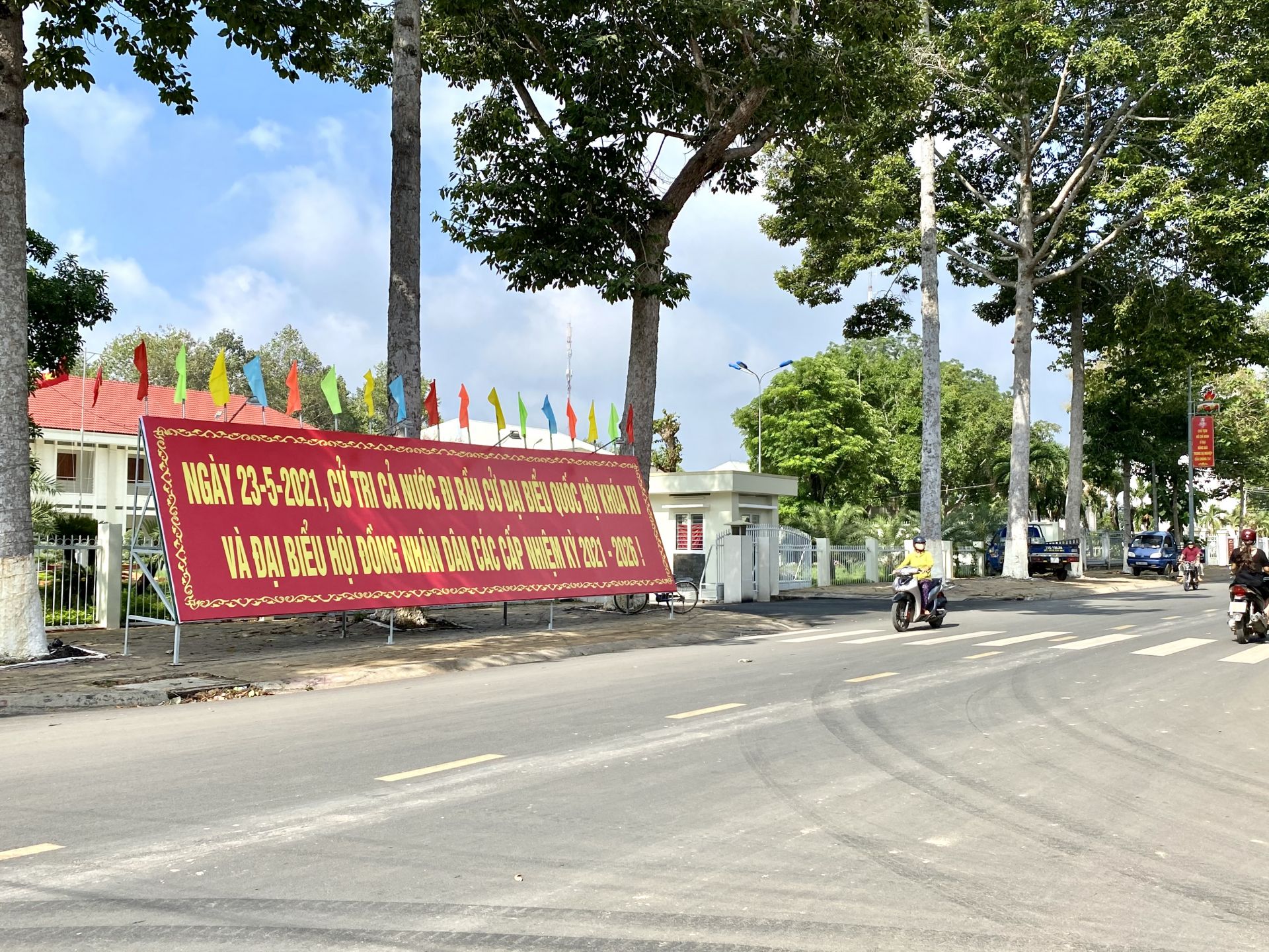 Tuyên truyền bầu cử trước trụ sở Huyện ủy Châu Thành.
