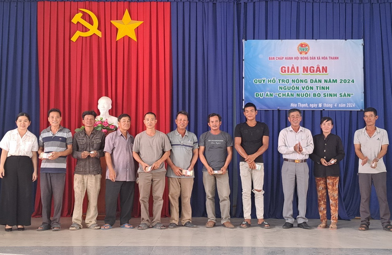 Chiều 16.4, Hội Nông dân tỉnh Tây Ninh cùng Hội Nông dân huyện Châu Thành tổ chức giải ngân nguồn vốn Quỹ Hỗ trợ nông dân cho hội viên tham gia dự án chăn nuôi bò sinh sản trên địa bàn xã Hoà Thạnh.