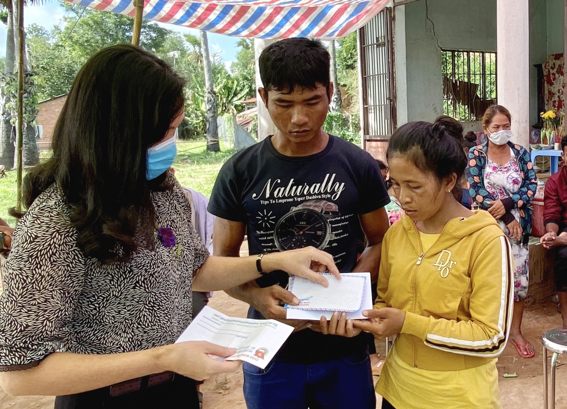 Trao tiền hỗ trợ cho gia đình em L