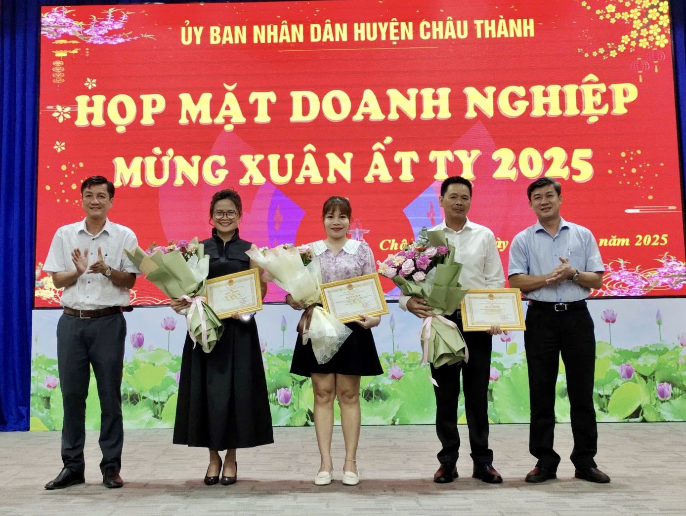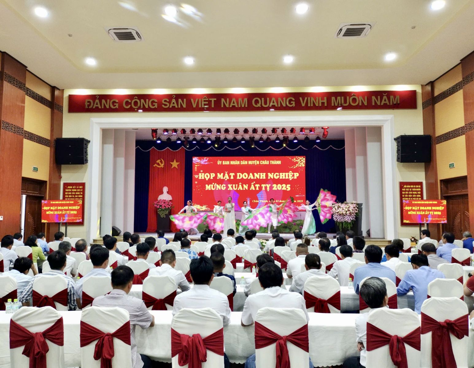 Chiều 3.1, huyện Châu Thành tổ chức họp mặt các doanh nghiệp mừng Xuân Ất Tỵ 2025. Đến dự có ông Trương Văn Hoàn- Bí thư Huyện uỷ; ông Thân Văn Nhân- Phó Bí thư Thường trực Huyện uỷ, Chủ tịch HĐND huyện; Ông Lê Ngọc Ẩn- Chủ tịch UBND huyện và đại diện các doanh nghiệp trên địa bàn huyện.