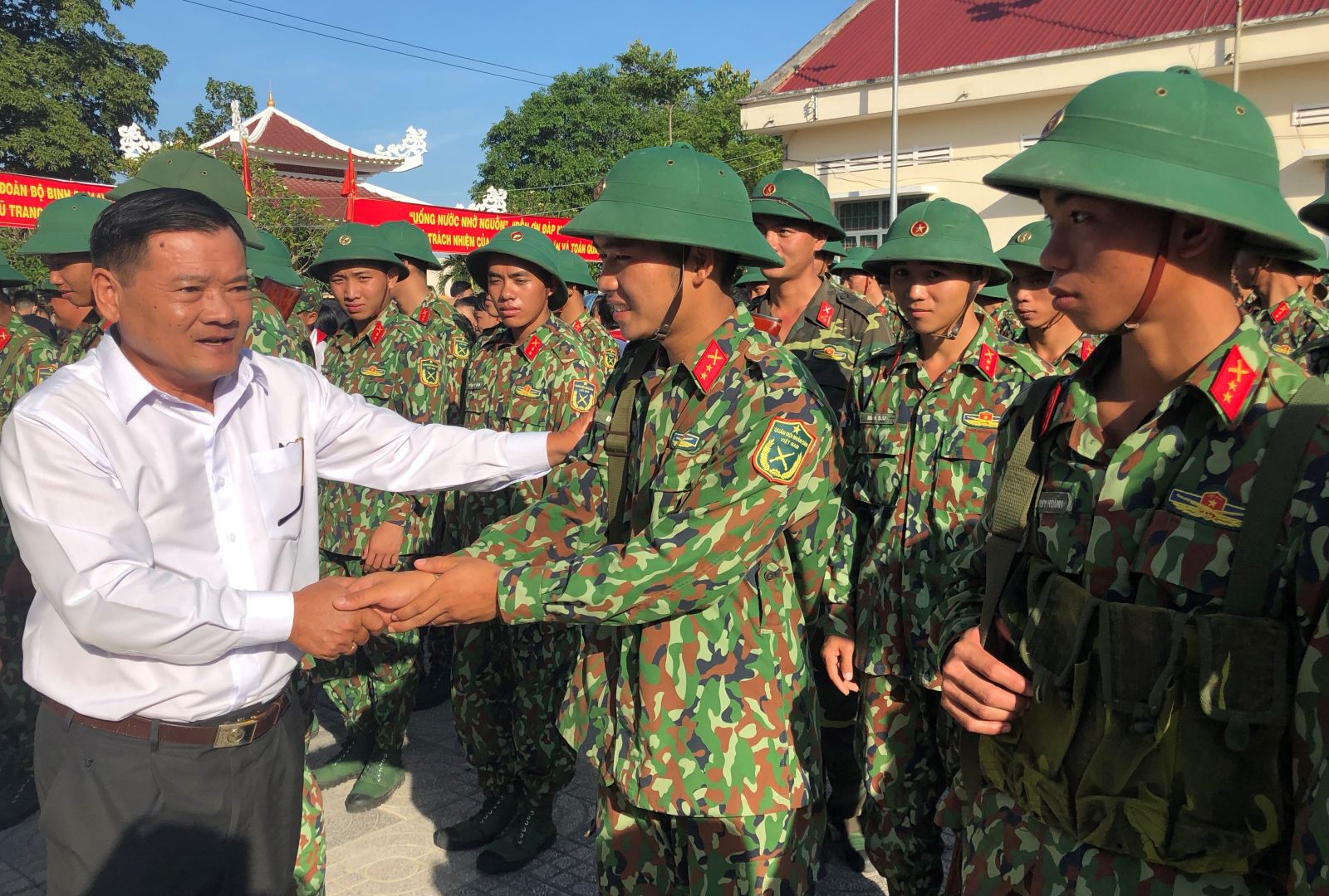 Ông Nguyễn Văn Hợp- Trưởng Ban Dân vận Tỉnh ủy, Chủ tịch UB.MTTQVN tỉnh thăm hỏi các chiến sĩ Sư đoàn 5 tại lễ ra quân.