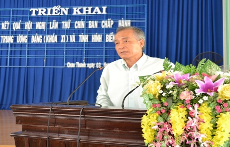 (BTNO)- Sáng 3.6, Ban thường vụ Huyện ủy Châu Thành tổ chức hội nghị cán bộ chủ chốt thông báo nhanh kết quả Hội nghị lần thứ 9 Ban Chấp hành Trung ương Đảng khóa XI và tình hình Biển Đông những ngày gần đây. Đồng chí Võ Hoàng Khải- Ủy viên Ban Thường vụ Tỉnh ủy, Trưởng Ban Tuyên giáo Tỉnh ủy đến dự.