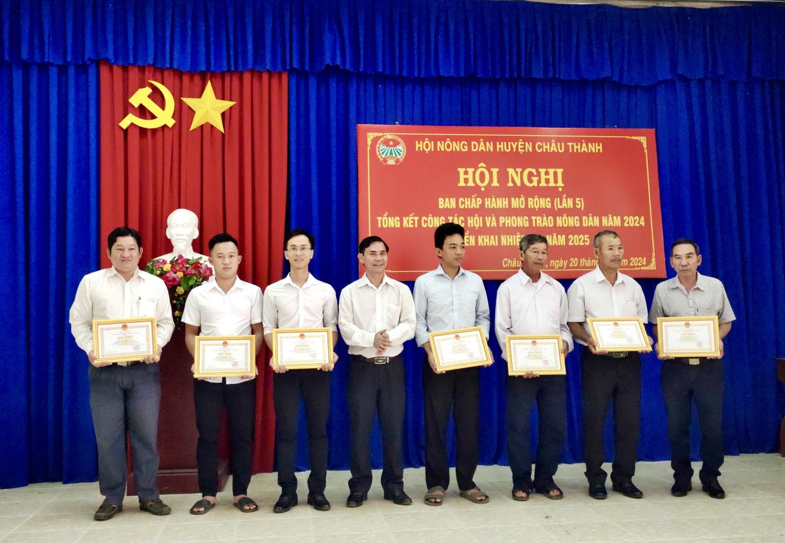 Dịp này, UBND huyện và Hội Nông dân huyện khen thưởng cho 28 tập thể và 19 cá nhân có thành tích tiêu biểu trong phong trào thi đua Hội Nông dân cấp cơ sở năm 2024.