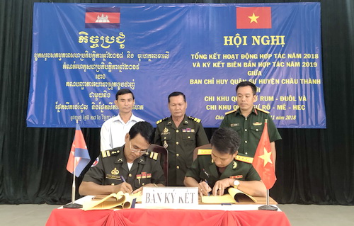 Ngày 28.11, Ban CHQS huyện Châu Thành tổ chức hội nghị tổng kết hoạt động hợp tác năm 2018 với Chi khu quân sự 2 huyện Romeas Haek và Romduol của tỉnh Svay Rieng (Vương quốc Campuchia).