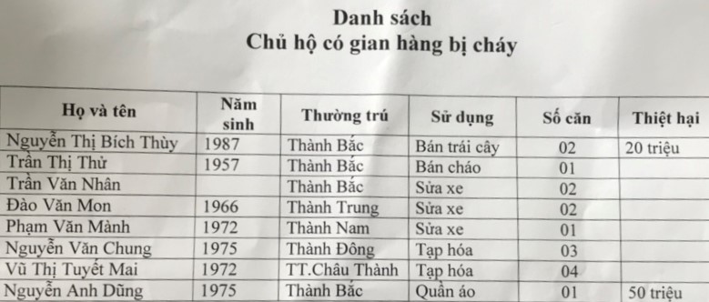 Sáng ngày 26.8, ông Nguyễn Văn Chủng-Chủ tịch UBND xã Thành Long, huyện Châu Thành xác nhận về vụ hỏa hoạn xảy ra tại chợ Hòa Bình vào lúc 23 giờ 20 phút ngày 25.8.