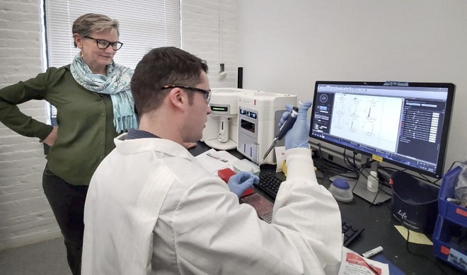 Tiến sĩ Anne De Groot (trái) tại phòng thí nghiệm của EpiVax. Ảnh: WBUR