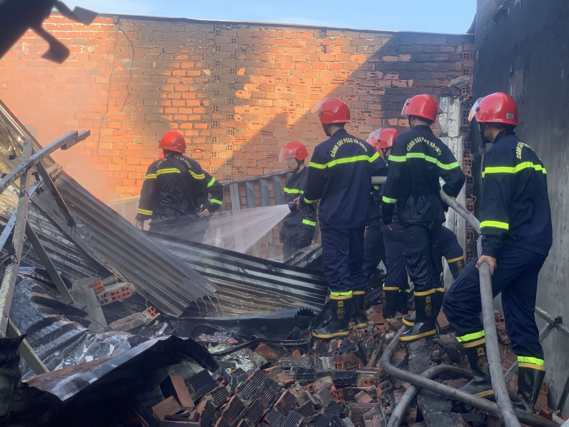 Lực lượng cảnh sát PCCC và CNCH dập tắt đám cháy.