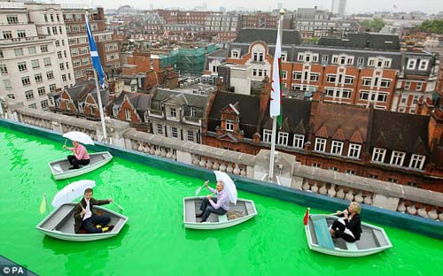 Bạn nghĩ gì khi bước vào một quán bar vừa thưởng thức cocktail vừa chèo thuyền trên một mái nhà, được phóng tầm mắt ra xa bao quát không gian rộng và cao? Quán bar có ý tưởng độc đáo này được mở cửa lần đầu tiên kể từ sau Thế chiến thứ hai, trên khu vườn tầng thượng Selfridges, London (Anh quốc).