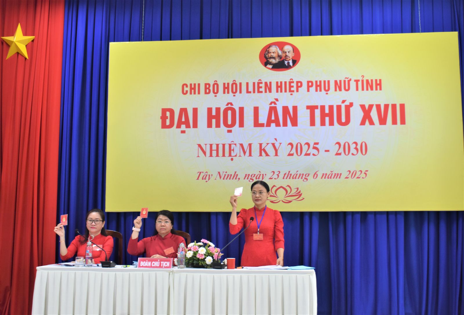 Bế mạc đại hội, Bí thư Chi bộ Phan Thị Thuỳ Vân khẳng định, Chi bộ Hội LHPN tỉnh sẽ tiếp tục đổi mới toàn diện nội dung và phương thức hoạt động, phát huy nội lực của đội ngũ đảng viên, hội viên. Qua đó, góp phần xây dựng hình ảnh người phụ nữ Tây Ninh thời đại mới: tự tin, trách nhiệm, tiến bộ, chủ động đóng góp trí tuệ và sức lực vào công cuộc xây dựng Tây Ninh trở thành một địa phương phát triển bền vững, văn minh và giàu bản sắc.