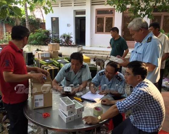 Số điện thoại di động hiệu Iphone không rõ nguồn gốc xuất xứ được tìm thấy trong container quá cảnh tại Cửa khẩu Quốc tế Mộc Bài. |