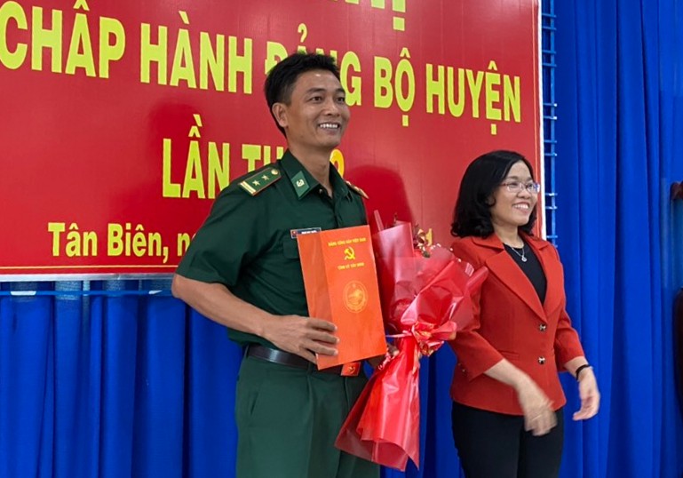 Chiều 22.4, tại Tân Biên, bà Nguyễn Thị Yến Mai - Trưởng ban Tổ chức Tỉnh uỷ trao quyết định của Ban Thường vụ Tỉnh uỷ, chỉ định bổ sung trung tá Phạm Mạc Thuần - Uỷ viên BCH Đảng bộ Bộ đội Biên phòng tỉnh, Chính trị viên Đồn Biên phòng Cửa khẩu Chàng Riệc vào Ban Chấp hành Đảng bộ huyện Tân Biên, nhiệm kỳ 2020 – 2025.