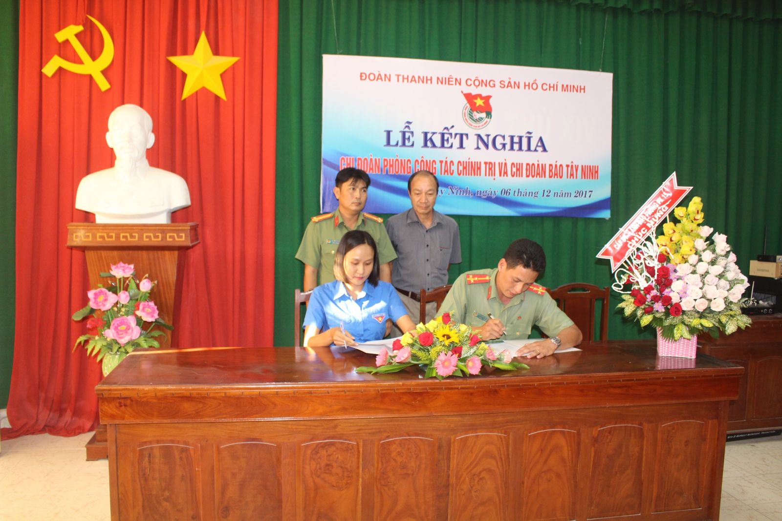Ngày 6.12, tại hội trường Báo Tây Ninh, Chi đoàn Báo Tây Ninh và Chi đoàn Phòng Công tác chính trị Công an tỉnh đã tổ chức lễ kết nghĩa.