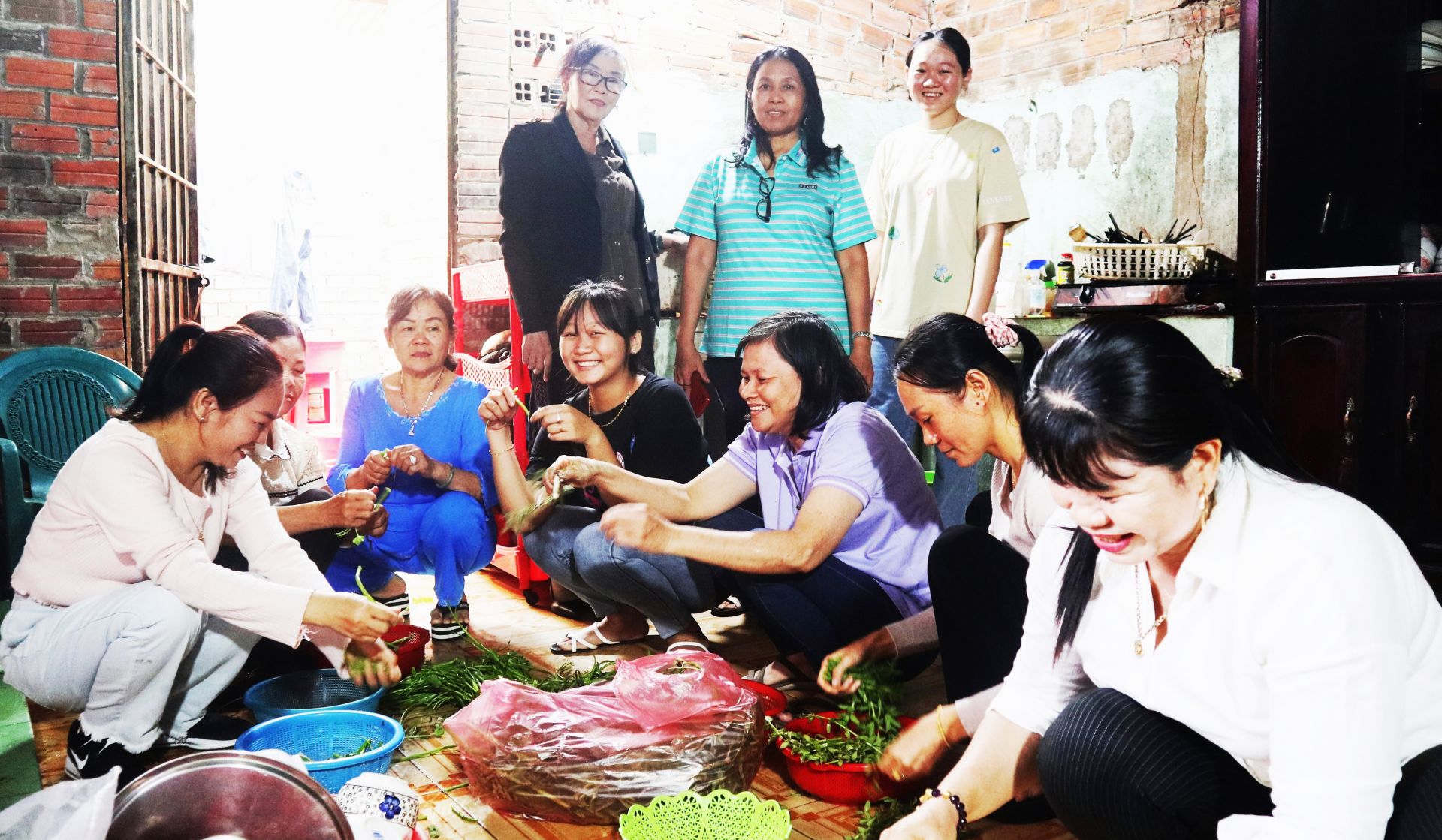 Những tình nguyện viên đang nhặt rau tại bếp ăn từ thiện.