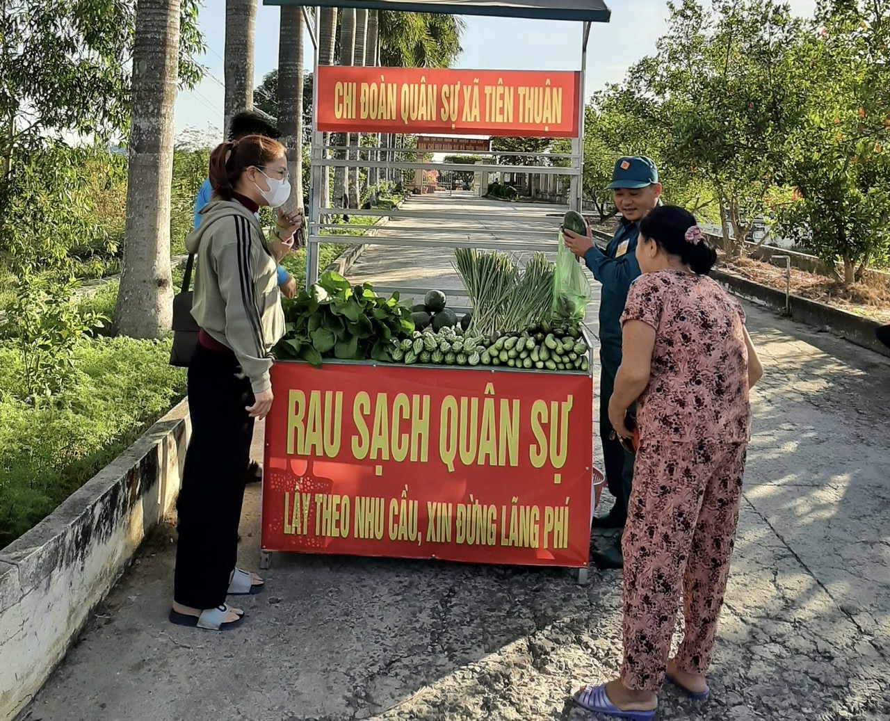 Quầy rau sạch do cán bộ, chiến sĩ Ban CHQS xã Tiên Thuận tăng gia.
