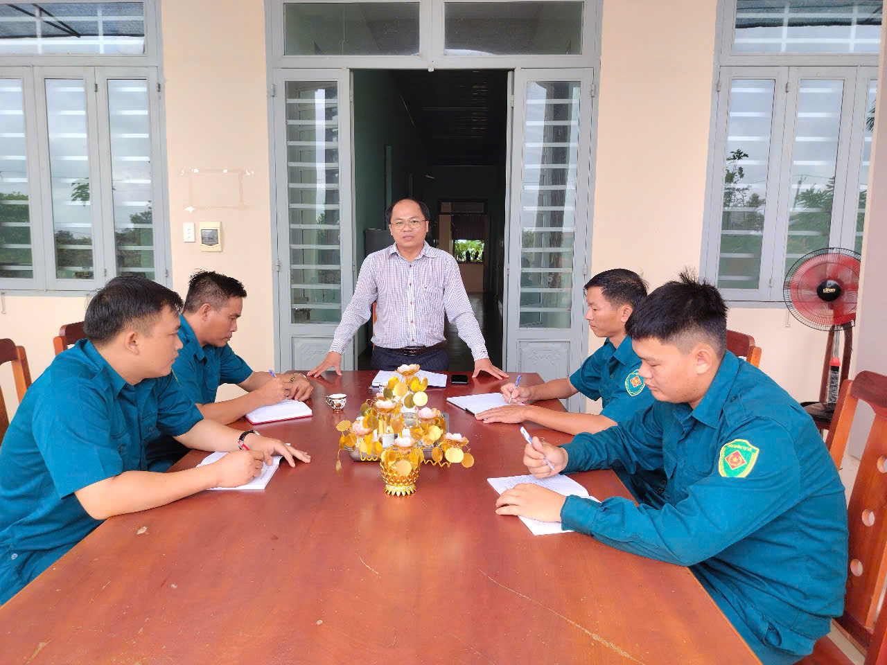 Bí thư Đảng uỷ xã Tiên Thuận, Bí thư Chi bộ Ban Chỉ huy Quân sự xã Hồ Võ Thái Bình quán triệt nhiệm vụ cho Ban Chỉ huy.
