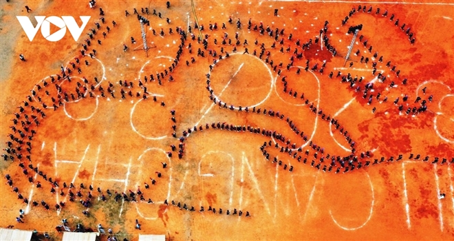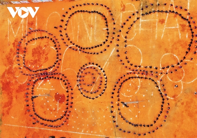 Có thời điểm khoảng 500 em học sinh cùng thực hiện màn múa.