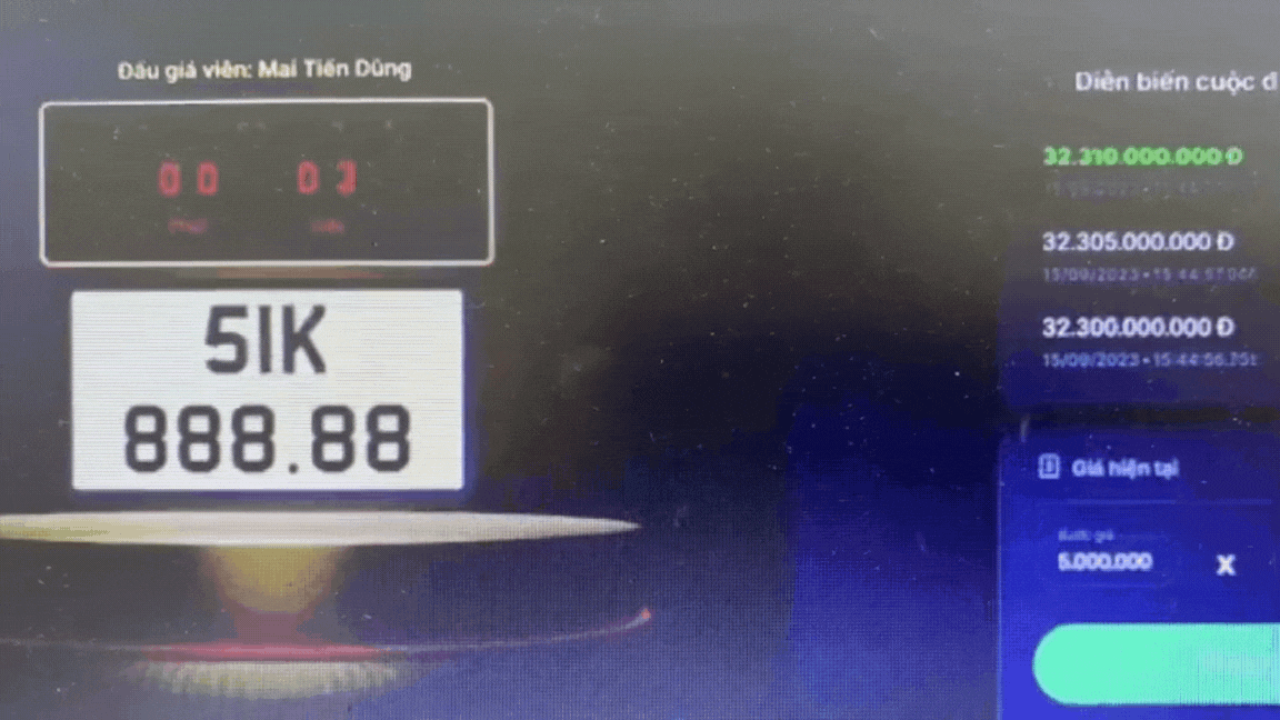 Danh sách 6 biển số "siêu đẹp" trong tổng số 11 biển đã lên sàn hôm 15/9 được tổ chức đấu giá lại bao gồm: 51K-888.88 (thành phố Hồ Chí Minh, trúng đấu giá với giá 32,340 tỷ đồng); 30K-555.55 (Hà Nội, chốt giá 14,12 tỷ đồng); 30K-567.89 (Hà Nội, chốt giá 13,075 tỷ đồng); 36A-999.99 (Thanh Hóa, trúng đấu giá 7,47 tỷ đồng), 98A-666.66 (Bắc Giang, trúng giá 3,075 tỷ đồng) và 47A-599.99 (Đắk Lắk, chốt giá 1,37 tỷ đồng).