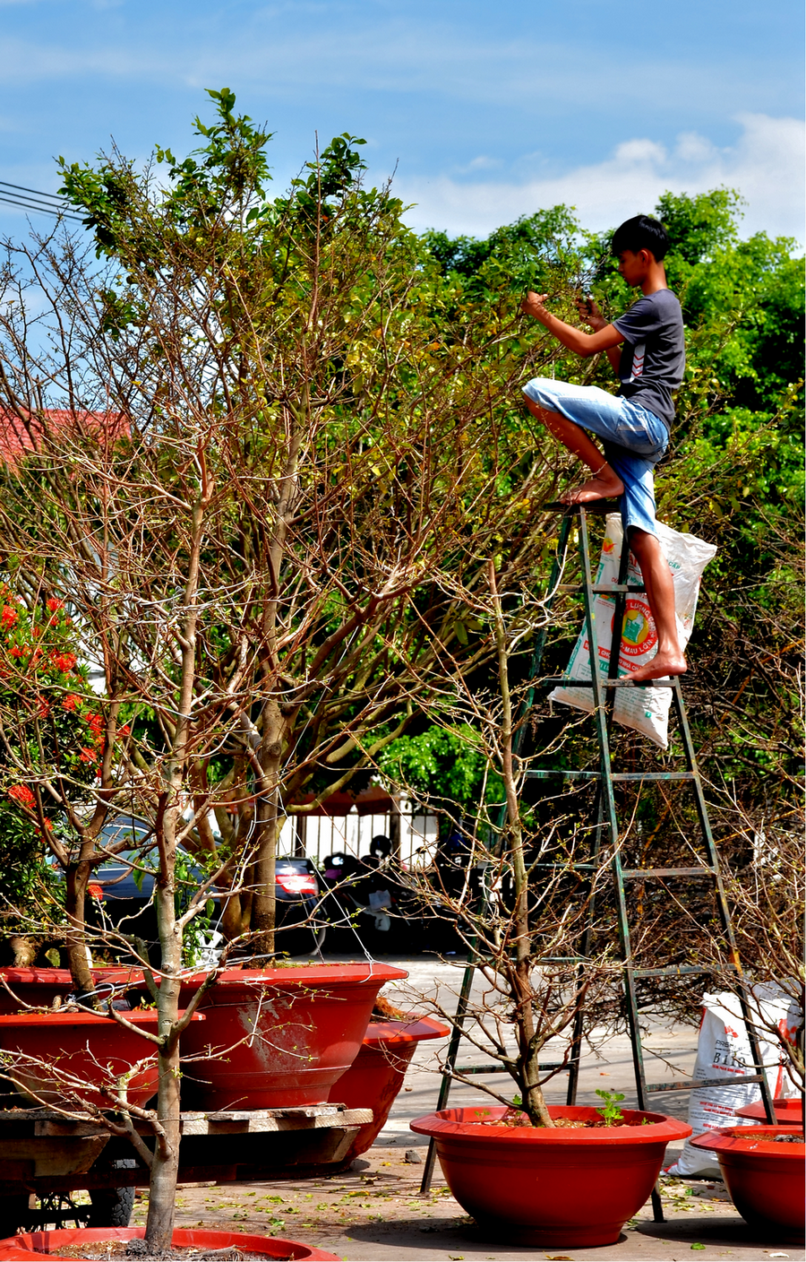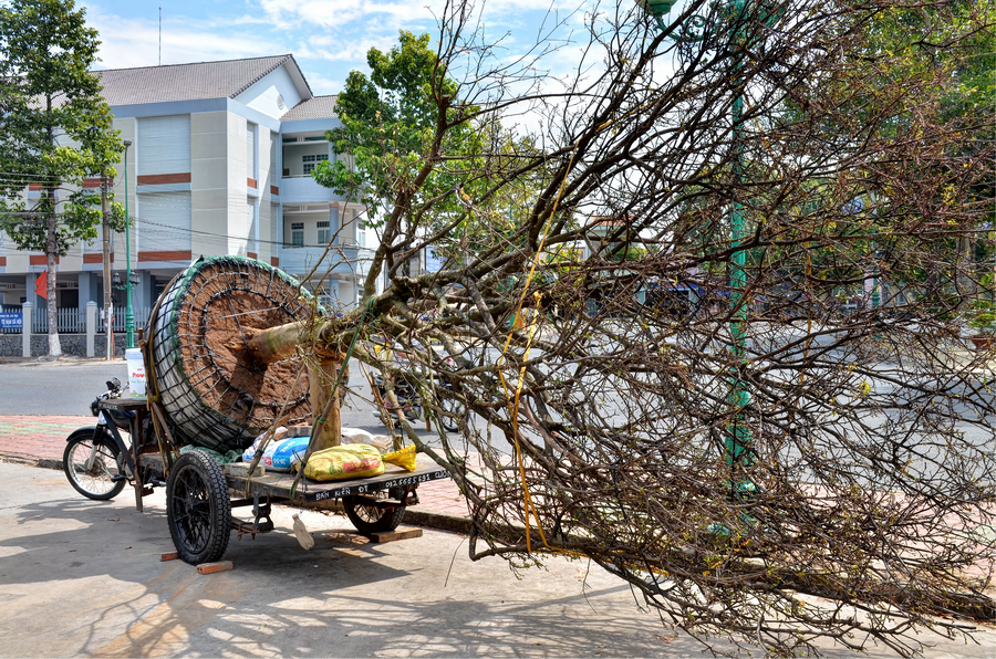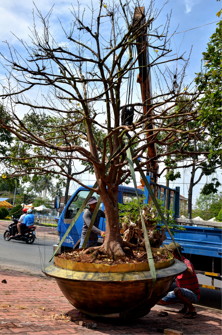 Chậu mai có giá 100 triệu đồng của một nghệ nhân ở xã Bình Minh, thành phố Tây Ninh vừa được đưa đến Chợ Hoa trưa 26.1.