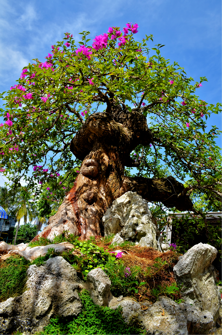 Chậu bông giấy được cắt tỉa, tạo thế rất đẹp.