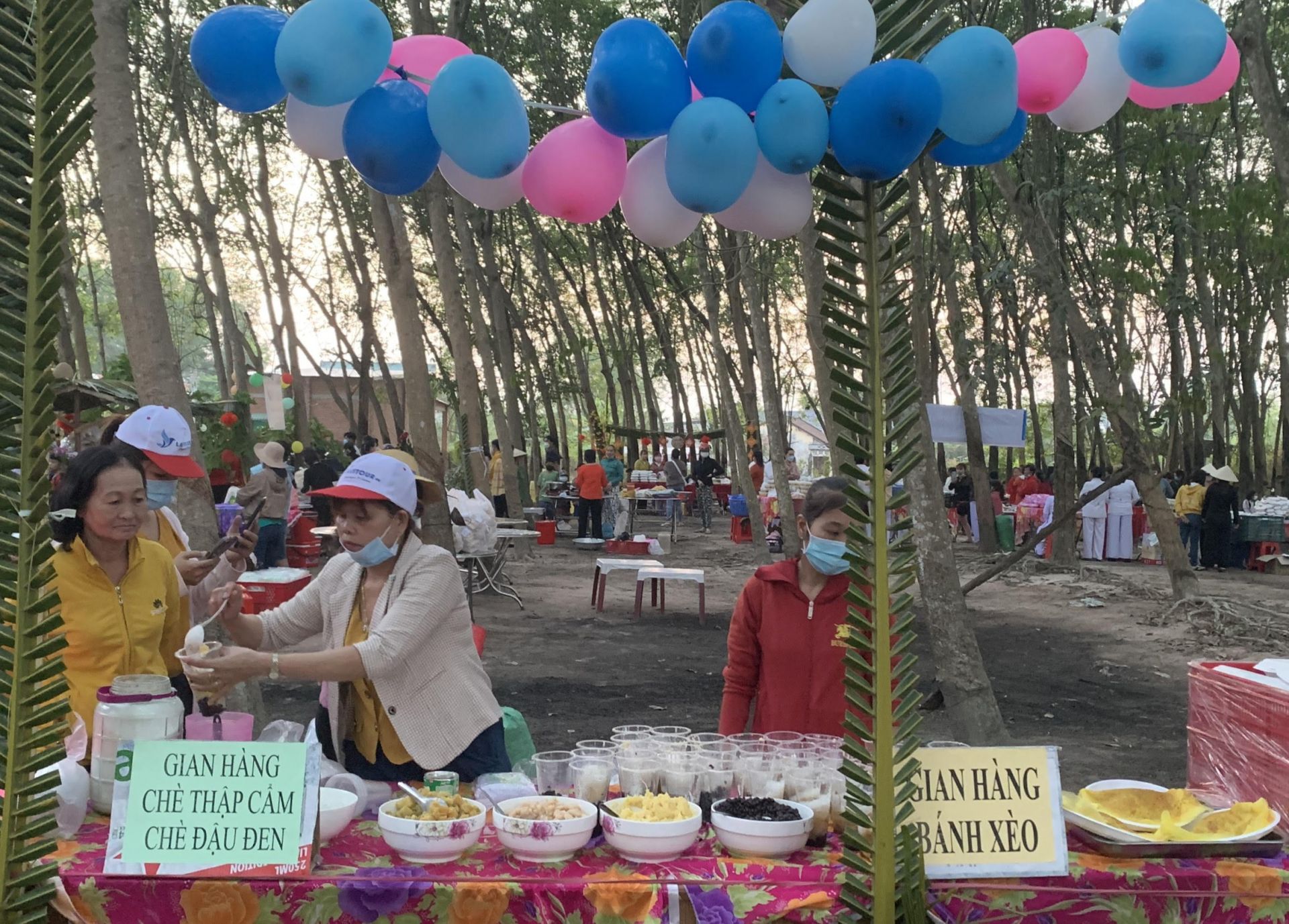 Sáng 5.3, Hội LHPN phường Lộc Hưng (thị xã Trảng Bàng) phối hợp Ban Cai quản họ đạo Cao Đài phường Lộc Hưng tổ chức phiên chợ lá tại vườn cao su sau thánh thất Lộc Hưng.