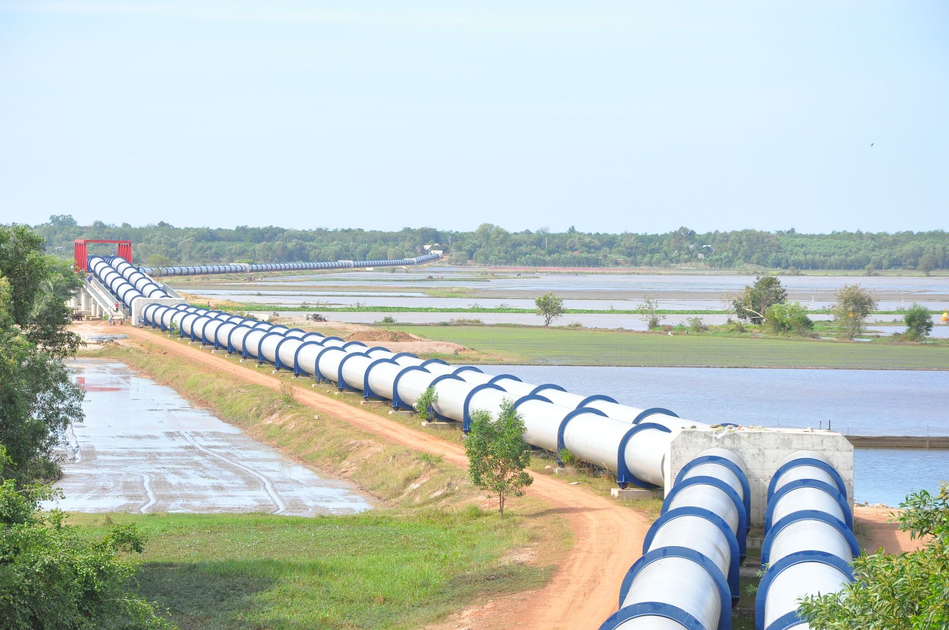 Đường ống dẫn nước vượt sông Vàm Cỏ Đông.