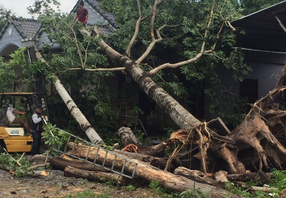 Cây bị đổ ngã do giông lốc, mưa lớn (ảnh: Minh Dương)