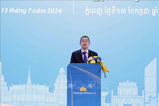 Trong khuôn khổ chuyến thăm cấp Nhà nước tới Vương quốc Campuchia, chiều 13/7/2024, tại Thủ đô Phnom Penh, Chủ tịch nước Tô Lâm dự Lễ công bố khai trương đường bay Hà Nội-Phnom Penh-Hà Nội và Lễ ký kết các biên bản thoả thuận giữa Vietnam Airlines với các đối tác tại Campuchia.