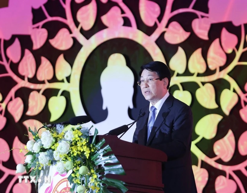 Chủ tịch nước Lương Cường phát biểu tại Lễ khai mạc Đại lễ Phật đản Liên hợp quốc lần thứ 20 - Vesak 2025. (Ảnh: Lâm Khánh/TTXVN)
