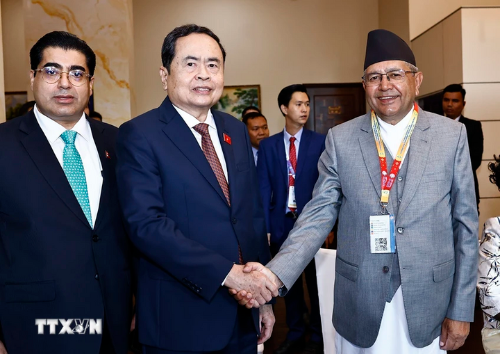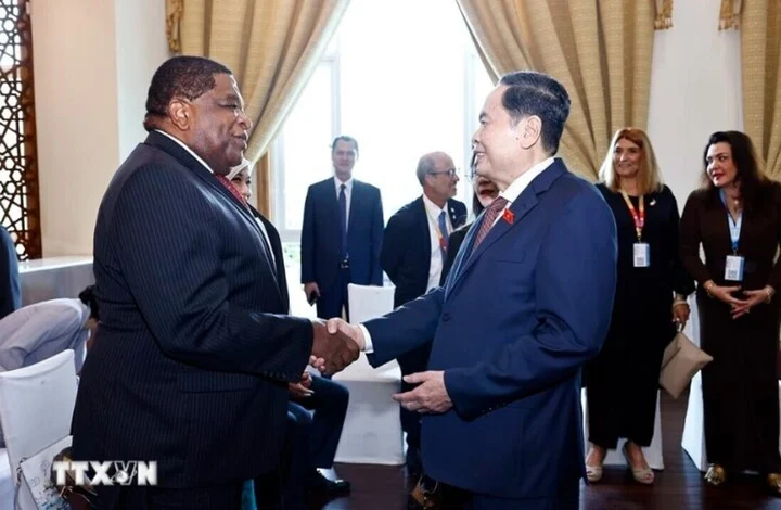 Chủ tịch Quốc hội Trần Thanh Mẫn với Tổng Thư ký Liên minh Nghị viện Thế giới (IPU) Martin Chungong. (Ảnh: Doãn Tấn)